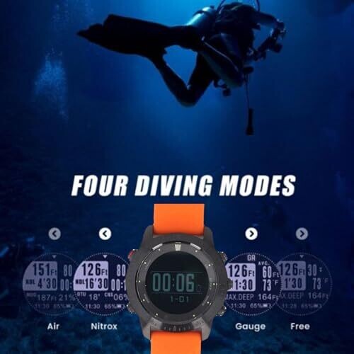 Velatemor Dive Computer Sports Watch delivers precise depth and dive-time data with reliable ascent-rate monitoring. Its 100-meter waterproof design supports swimming, snorkeling, and deep-sea adventures, while long battery life and durable silicone strap ensure comfort and continued connectivity.