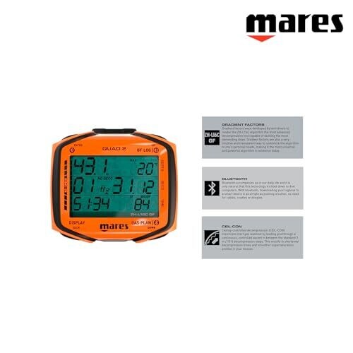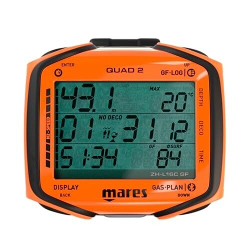 • Mares Quad 2 Smart Wrist Dive Computer | Depth Decompression, Time Display, Orange